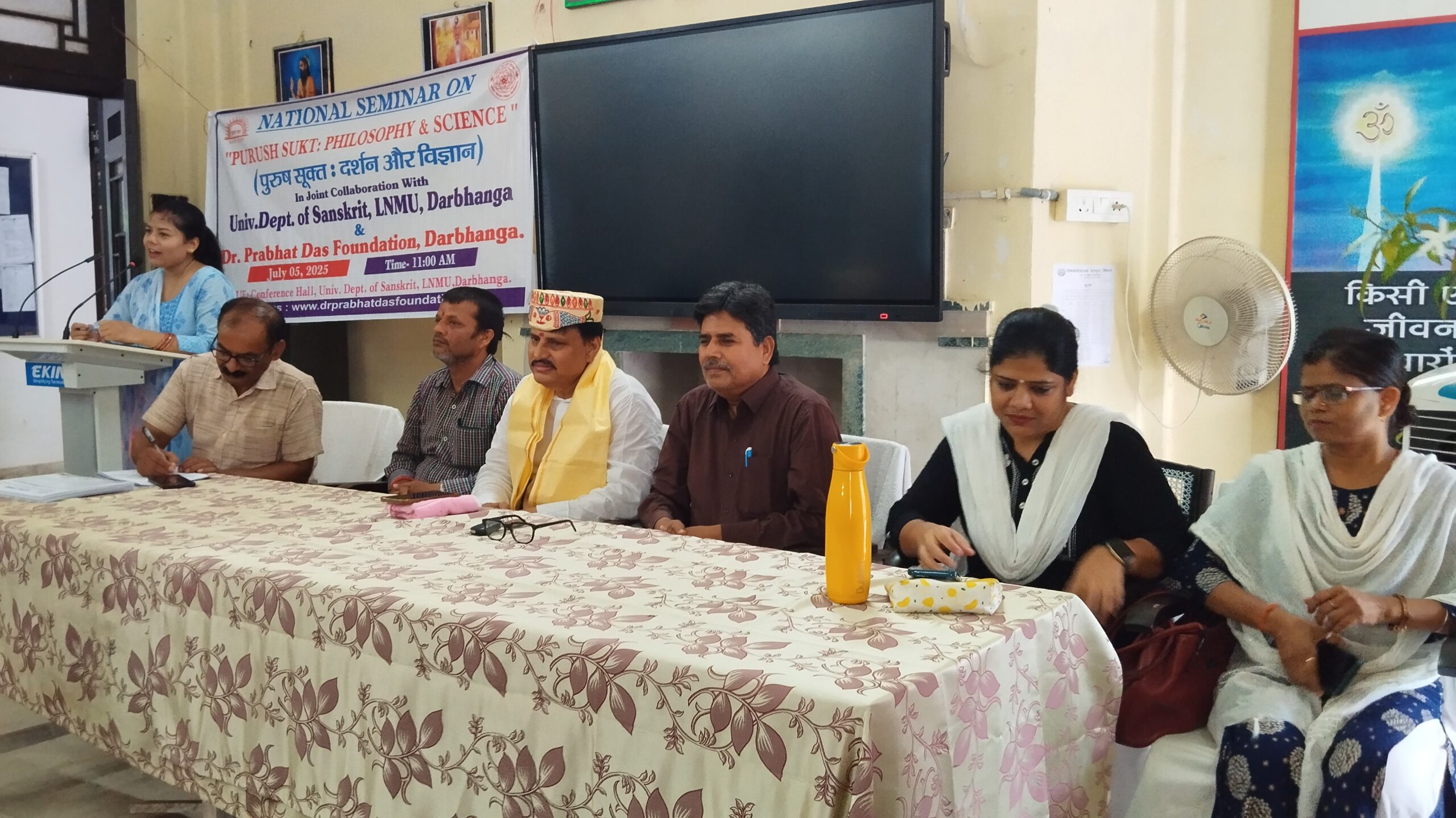 ऋग्वेद का पुरुष सूक्त दार्शनिक एवं वैज्ञानिक परिपेक्ष्य में अत्यंत ही महत्वपूर्ण एवं वेदों का सार तत्व है। यह पुरुष ही परमपुरुष, आदिपुरुष, परब्रह्म या परमेश्वर है जो माया- मोह तथा लोभ-भय आदि से मुक्त निर्लिप्त भाव से सर्वत्र व्याप्त है। यह अधिकांश दर्शनों एवं कई वैज्ञानिक सिद्धांतों का आधार है। यह परम पुरुष मोक्ष दाता है जो सबके हृदय में वास करता है। उक्त बातें कामेश्वर सिंह दरभंगा संस्कृत विश्वविद्यालय के पूर्व वेद विभागाध्यक्ष डॉ विनय कुमार मिश्र ने ललित नारायण मिथिला विश्वविद्यालय, दरभंगा के विश्वविद्यालय संस्कृत विभाग तथा डॉ प्रभात दास फाउंडेशन के संयुक्त तत्वावधान में पीजी संस्कृत विभाग में “पुरुषसूक्त : दर्शन और विज्ञान” विषयक राष्ट्रीय सेमिनार में मुख्य अतिथि के रूप में कही। उन्होंने सेमिनार के विषय को प्रासंगिक एवं शोध के लिए अति गंभीर बताते हुए कहा कि पुरुषसूक्त से प्रेरणा पाकर ही कपिल ने शांख्यदर्शन का प्रणयन किया। पुरुष शांत भाव से रहता है, पर उसकी उपस्थिति मात्र से ही ऊर्जा का संचार होता है। डॉ मिश्र ने ब्रह्मांड की उत्पत्ति के निर्मित्त, उपादान एवं सामान्य करणों को विस्तार से बताते हुए कहा कि प्रकृति उपादान कारण, परमात्मा निमित्त कारण तथा अन्य सभी साधन सामान्य कारण हैं।