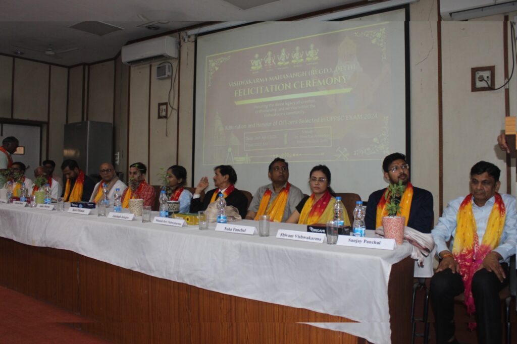 The Biharijanseva:नई दिल्ल।विश्वकर्मा महासंघ के तरफ से आयोजित डॉ. भीमराव अंबेडकर महाविद्यालय में उत्तर प्रदेश लोक सेवा आयोग में चयनित नेहा पंचाल, शिवम विश्वकर्मा, रिंकी धीमान व अंकुर शर्मा को सम्मानित किया गया। इस मौके पर अंबेडकर कॉलेज के डॉ. महेश पांचाल ने स्वागत वक्तव्य में कहा कि आज हमारे समाज में ऐसे प्रतिभाशाली विद्यार्थी हैं जो बहुत कम संसाधनों में अपने लक्ष्य को हासिल कर रहे हैं। उन्होंने सभी उपस्थित अतिथियों व आगंतुकों का स्वागत करते हुए कहा कि यह मंच युवाओं को आगे बढ़ने की प्रेरणा देता है।