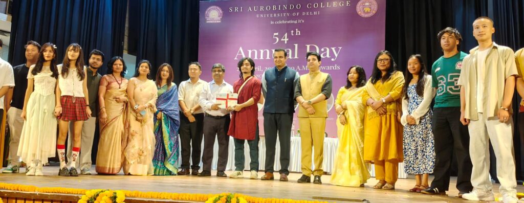 The Biharijanseva : नई दिल्ली। दिल्ली विश्वविद्यालय से संबद्ध श्री अरविंद महाविद्यालय का 54वाँ वार्षिकोत्सव आज एन सी यू आई ऑडिटोरियम में बड़े उत्साह और गरिमा के साथ आयोजित किया गया। कार्यक्रम में शिक्षाविदों, विद्यार्थियों तथा अतिथियों की गरिमामयी उपस्थिति ने समारोह को विशेष बना दिया।