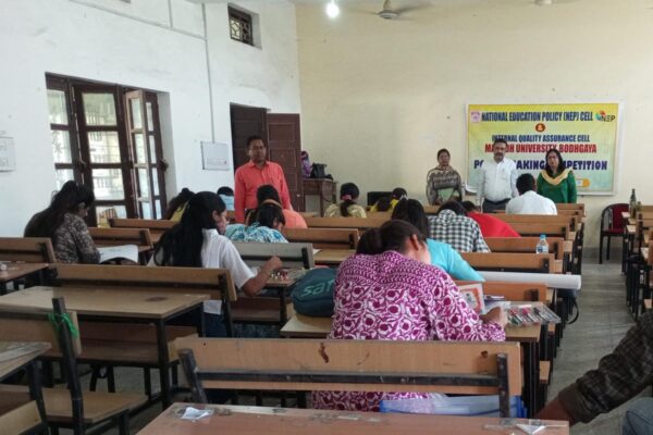मगध विश्वविद्यालय के सभी स्नातकोत्तर एवं स्ववित्तपोषित विभागों के शोधार्थियों एवं विद्यार्थियों के लिए राष्ट्रीय शिक्षा नीति (NEP) प्रकोष्ठ एवं आंतरिक गुणवत्ता आश्वासन प्रकोष्ठ (IQAC) के संयुक्त तत्वावधान में 24 सितम्बर 2025 को पोस्टर निर्माण प्रतियोगिता एवं समूह चर्चा का सफल आयोजन किया गया।पोस्टर निर्माण प्रतियोगिता का विषय “राष्ट्रीय शिक्षा नीति-2020 के किसी भी सिद्धांत/पहल/सुझाव…