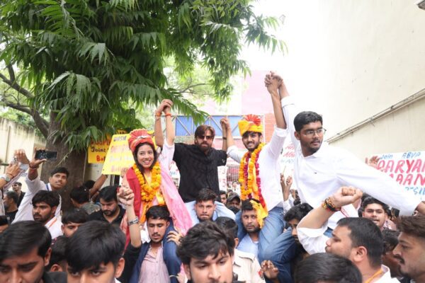 डूसू चुनाव : छात्रों ने किया एबीवीपी प्रत्याशियों का पुरजोर समर्थन